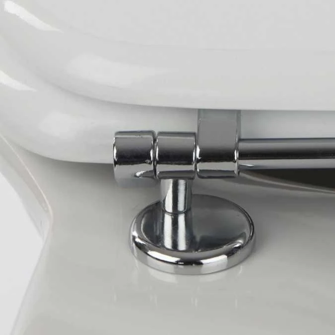 The MDF AntiBac is a good quality, smooth, heavy weighted and lacquered toilet seat. With chrome-plated metal bar hinges, and antibacterial finish.