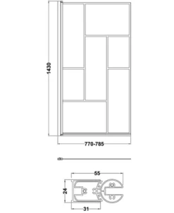 Abacus Walk In Shower Screen 700mm With Matt Black Hinged Return 350mm