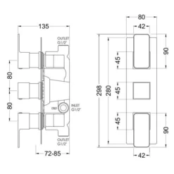 Windon Brushed Brass Triple Concealed Shower Valve (Low Pressure) – Two Outlets – Nuie