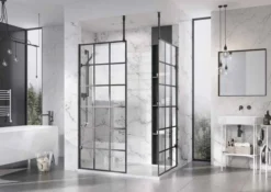 Roman Liberty 857mm Matt Black Wetroom Panel With Clear Glass Corner