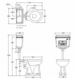 Burlington Close Coupled WC & White Ceramic Cistern With Lever P5 C1