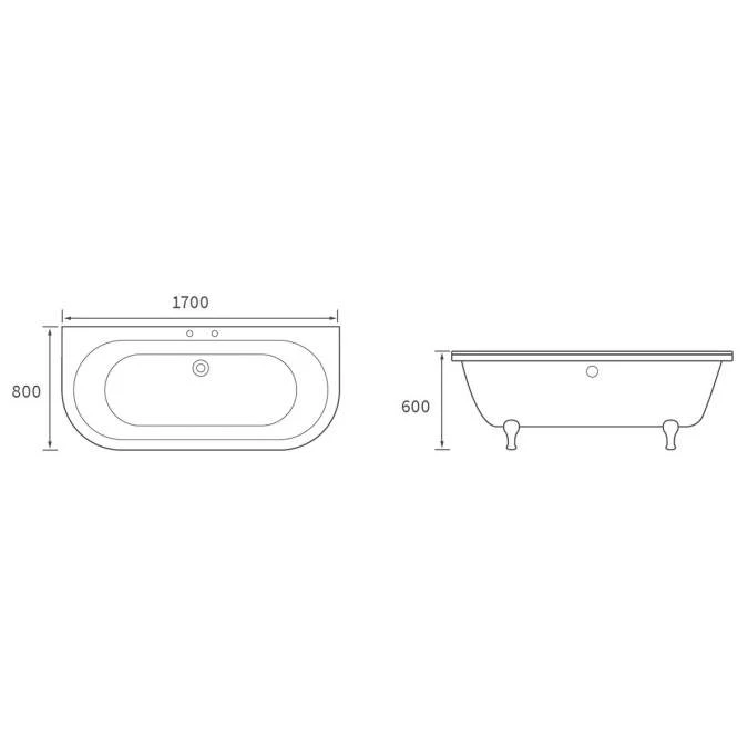 York Traditional Back to Wall Roll Top Bath 1700 x 800mm
